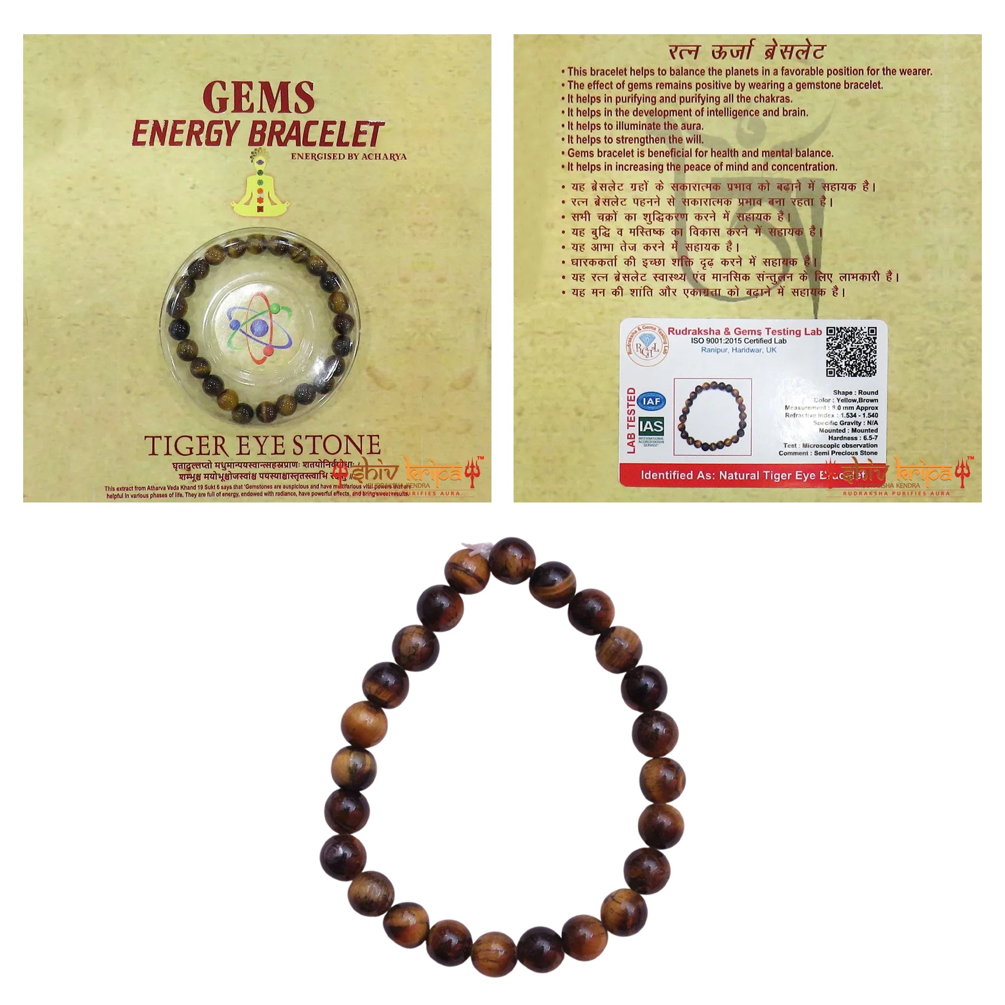 Discover the captivating allure of the Natural Tiger Eye Bracelet, a stunning piece of jewellery that combines elegance with powerful properties. Priced at just ?600, this bracelet is crafted with round-shaped Tiger Eye stones, measuring approximately 8.0 mm each. Featuring a reflective index of 1.534 – 1.540 and a hardness of 6.5 – 7, this bracelet showcases a rich palette of yellow and brown hues set in a durable and mounted design.