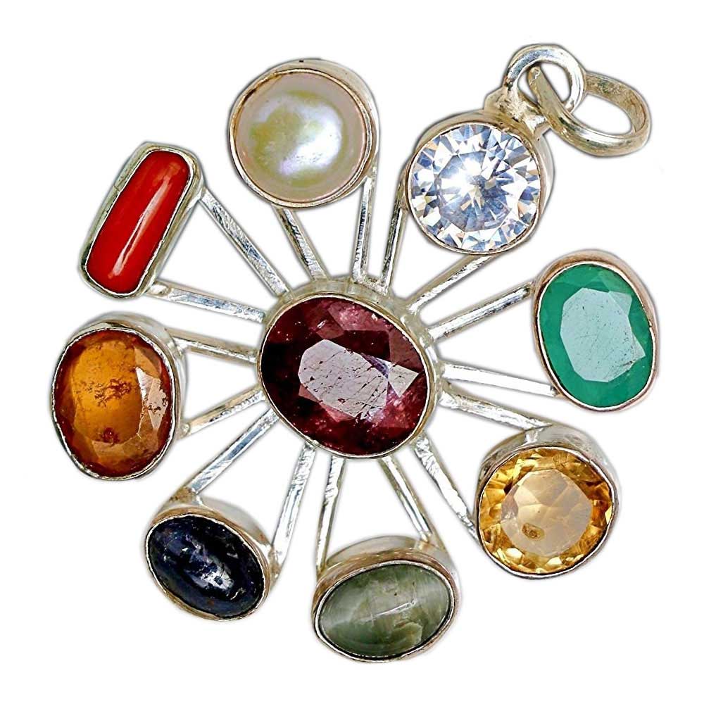 Real Navaratan Pendant in Pure Silver