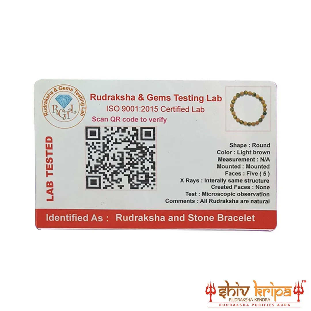 This Rudraksha Gemstone Energy Bracelet is certified by Government ISO 9001:2015 Approved Laboratory. At the backside of its packaging, there is a “QR CODE” on the Lab Test Report Card to verify its authenticity.