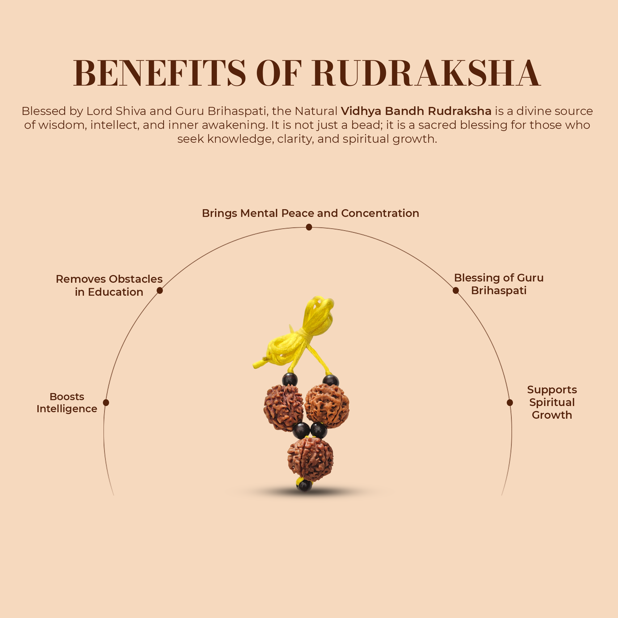 Vidya Bandh is a thoughtfully designed accessory ideal for students, teachers, artists, and public speakers - anyone engaged in learning, creativity, or influencing others. Rooted in traditional wisdom and supported by modern understanding of cognitive well-being, it is believed to enhance memory, concentration, and mental clarity. By stimulating key energy centers, Vidya Bandh may promote brain development, spark creativity, and strengthen communication skills, making it a powerful tool for personal and professional growth.